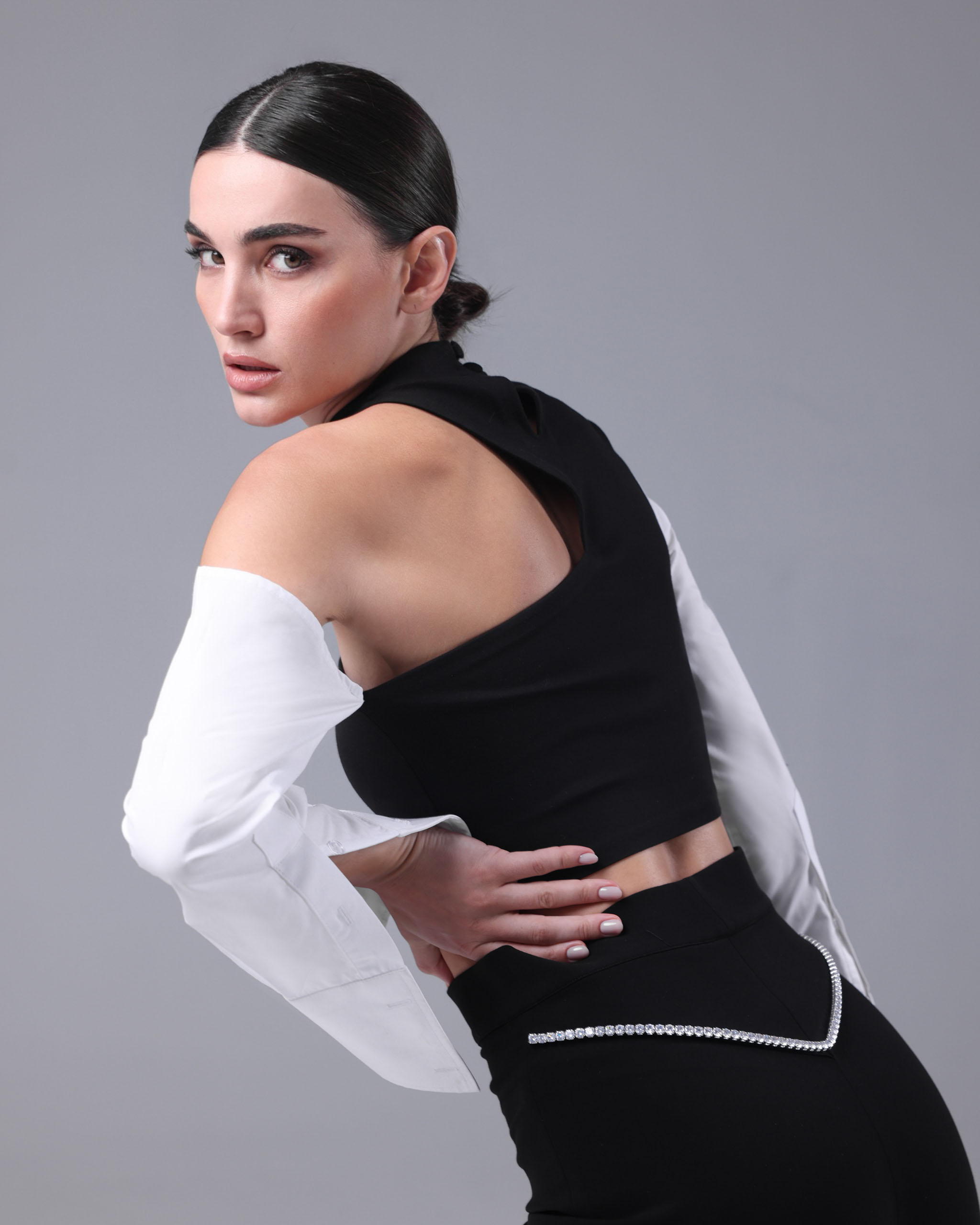 Our boot cut crystal trousers feature a subtle cascade of crystals on the back. Designed for a luxury yet effortless look, they’re perfect to go from casual chic to evening glam.